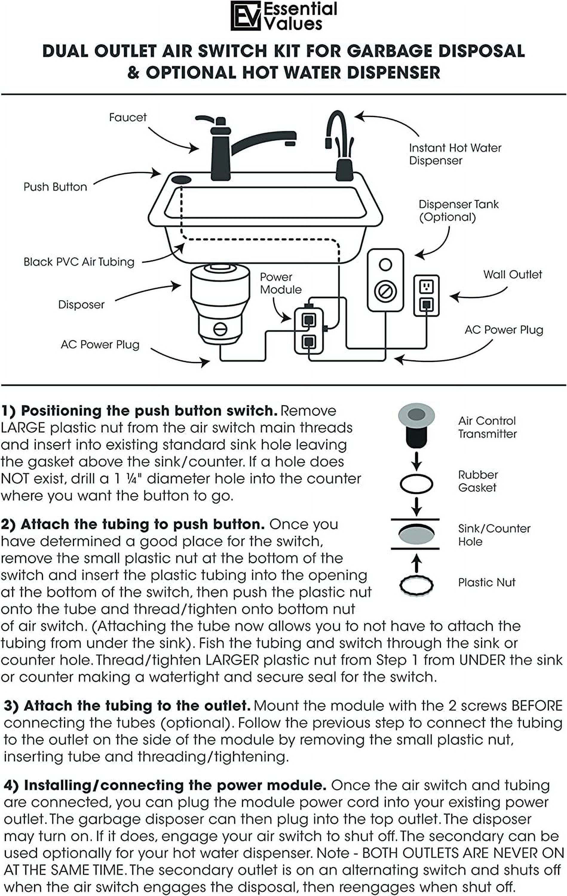 Garbage Disposal Air Switch Dual Outlet Sink Top Counter Top Waste Disposal On Off Switch For Insinkerator Waste King Garbage Disposals Without Switch Access By Essential Values Chrome Walmart Com